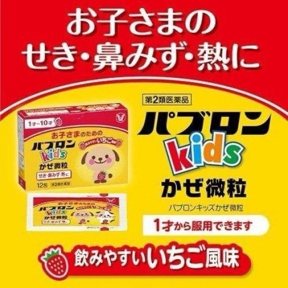 日本🇯🇵大正製薬兒童感冒藥微粒 (12包) 🔹新舊版包裝隨機🔹 專為1-10歲兒童👶🏻👧🏻設計的感冒藥 🤧緩和感冒的各種症狀, 連發燒也有幫助啊 係小朋友最喜歡的士多啤梨味🍓🍓 只要少量的水就能快速溶解,服用相當方便 兒童感冒藥是日本大正製藥出品,專為兒童而設計的感冒藥,能夠舒緩感冒的各種症狀: 咳嗽,鼻水,發熱,喉嚨痛,噴嚏,痰,鼻子堵塞,發冷,頭痛,關節的痛疼,肌肉的痛疼 這款藥物只能用於舒緩上,靠的是小朋友的自體免疫系統來打擊病毒,若是狀況一直沒改善的話,請自行就醫 服用方法: 1天3次,飯後30分鐘內溫水服用 1-2歲:一次1/2包 3-6歲:一次2/3包 7-10歲:一次1包 🙅🏻♀️未滿1歲者,請勿服用 用法: - 請遵守以上規定的劑量服用及參閱盒內說明用法 - 讓小孩服用的情況下,請在家長的監督下服用。 - 兒童服用的情況下,請先接受醫師的指示後服用
