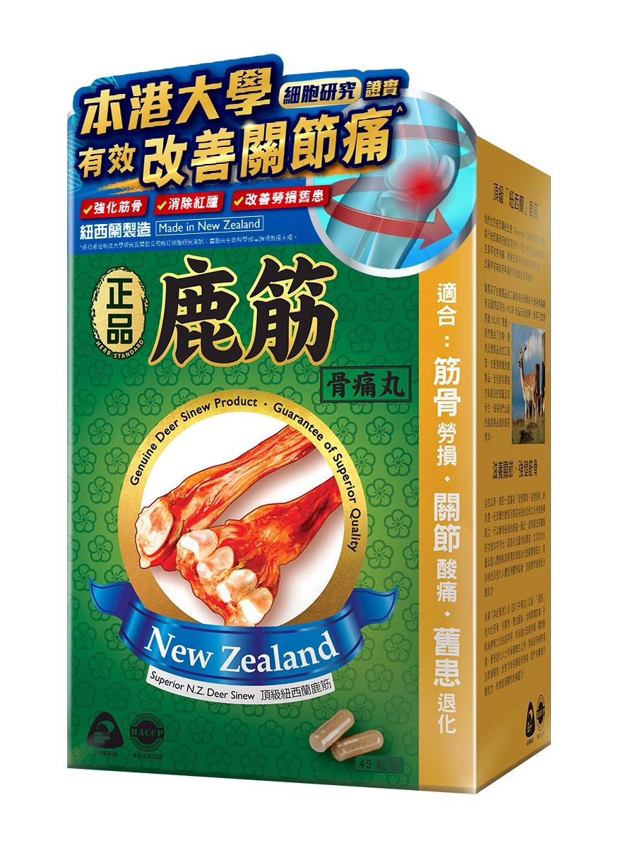 本週特價包順豐🛍️Herb Standard正品藥業鹿筋骨痛丸膠囊45粒💚 🉐優惠期至21/10/2025 產品簡介 「正品鹿筋骨痛丸」是市場唯一,獲本港大學證實,有效改善關節痛的鹿筋產品。根據《本經逢原》記載:「鹿筋能大壯筋骨、治潮濕關節痛、手腳痳痹無力及抽筋」,是歷代中醫治理關節痛症的養生珍品,有利關節、養血通絡。「正品鹿筋骨痛丸」有效改善關節痛,針對改善關節勞損、舊患、慢性退化等問題。 產品功效 大學生命科學部「高錦明教授」及其大學團隊,歷時半年的研究證實,「正品鹿筋骨痛丸」增強60%強效抗氧化,保護關節細胞,免受到紅熱因子攻擊而引致的損傷;更能抑制48%紅熱因子釋放擴張;針對改善關節勞損、舊患、慢性退化等問題。 「正品鹿筋骨痛丸」採用紐西蘭的頂級鹿筋、鹿骨鈣、櫻桃萃取及磷蝦油,功能迅速潤滑關節及修補勞損、針對消除筋骨酸痛,大幅提升關節活動能力,有效使關節靈活輕鬆。 食用方法 每日1次,於早餐前服3粒,建議連續服用3個月為佳 適用人士 筋骨勞損、關節酸痛、舊患惡化